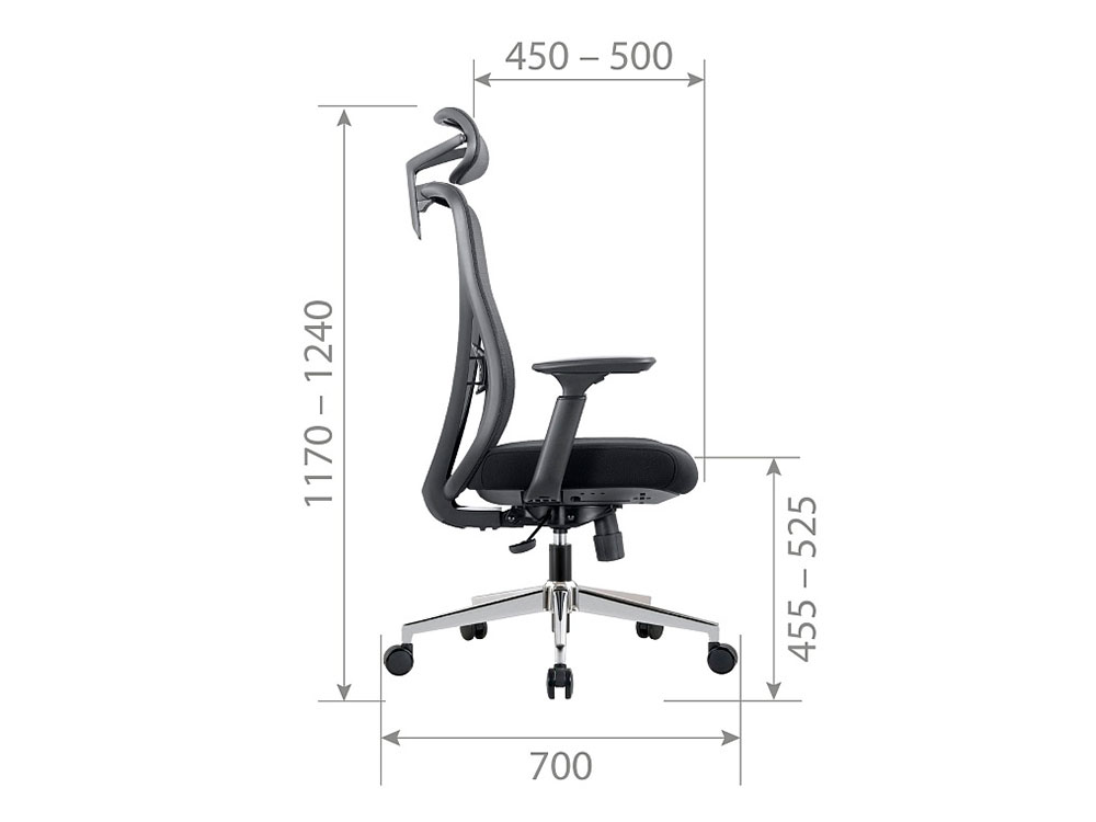 Высота кресла (мм): 1 170 - 1 240