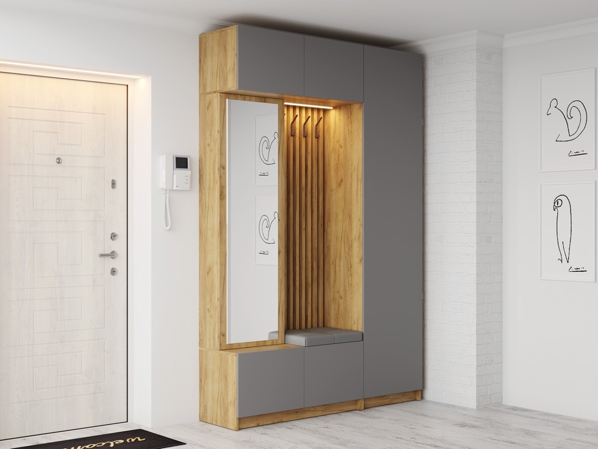 - Модульная прихожая Бостон ЛДСП серый шифер с пеналом