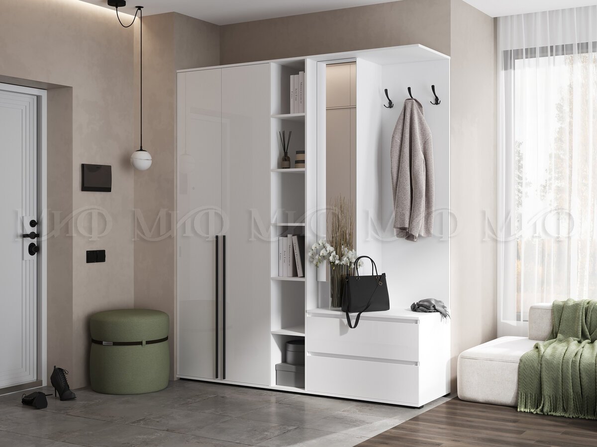- Прихожая модульная Норд Белый глянец холодный