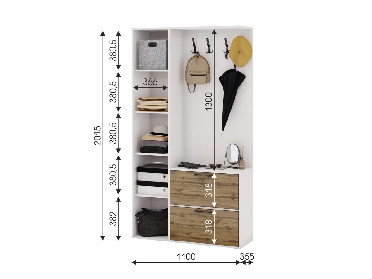 Размер:Ш1100* В2015* Г355 мм