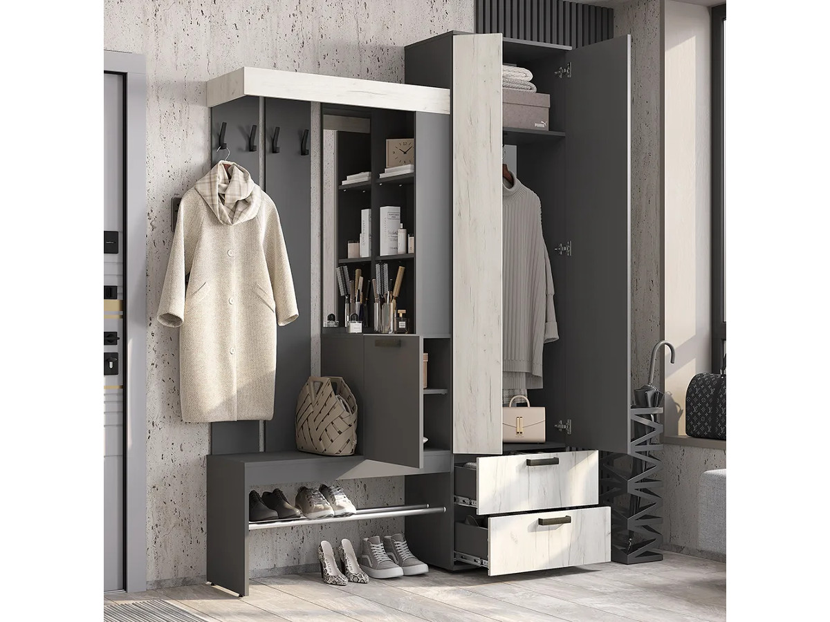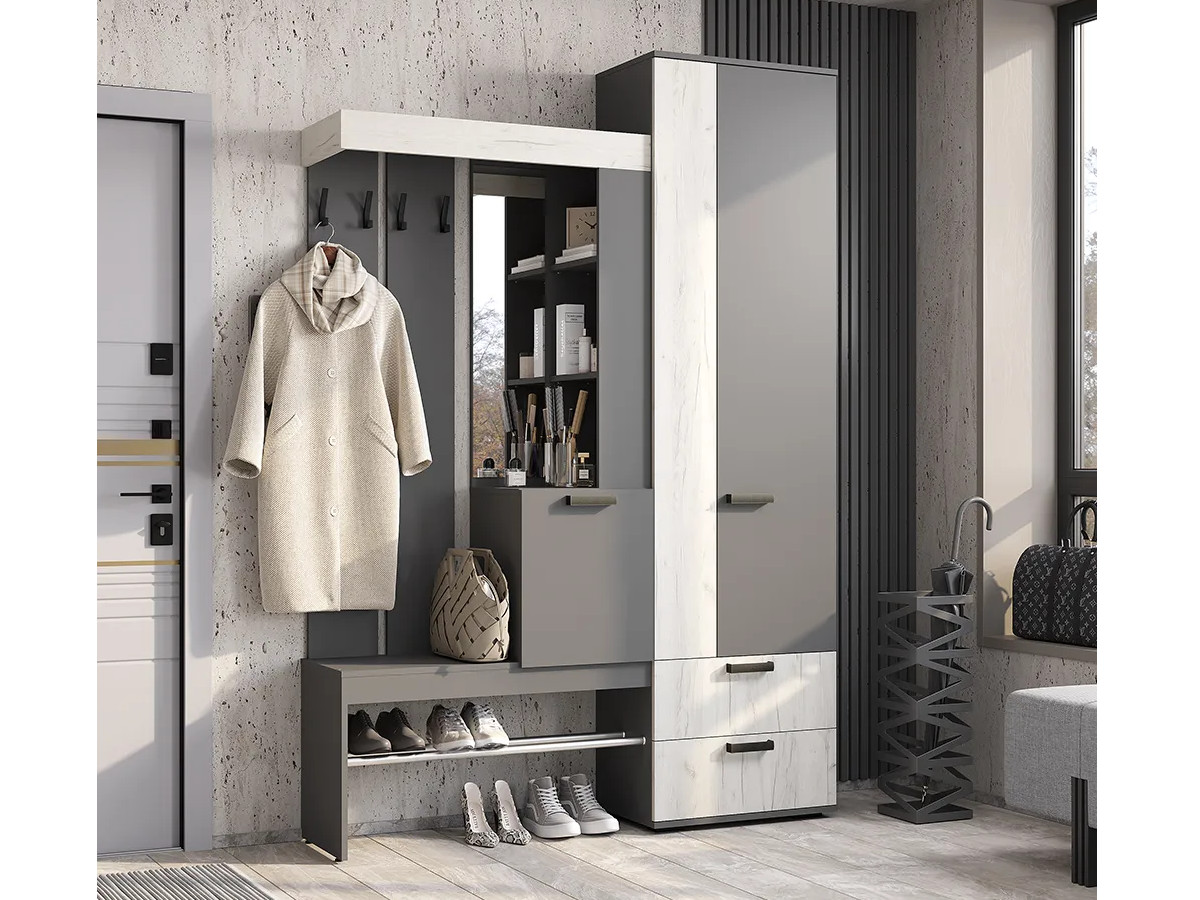 Прихожая Трамп Графит/дуб крафт белый