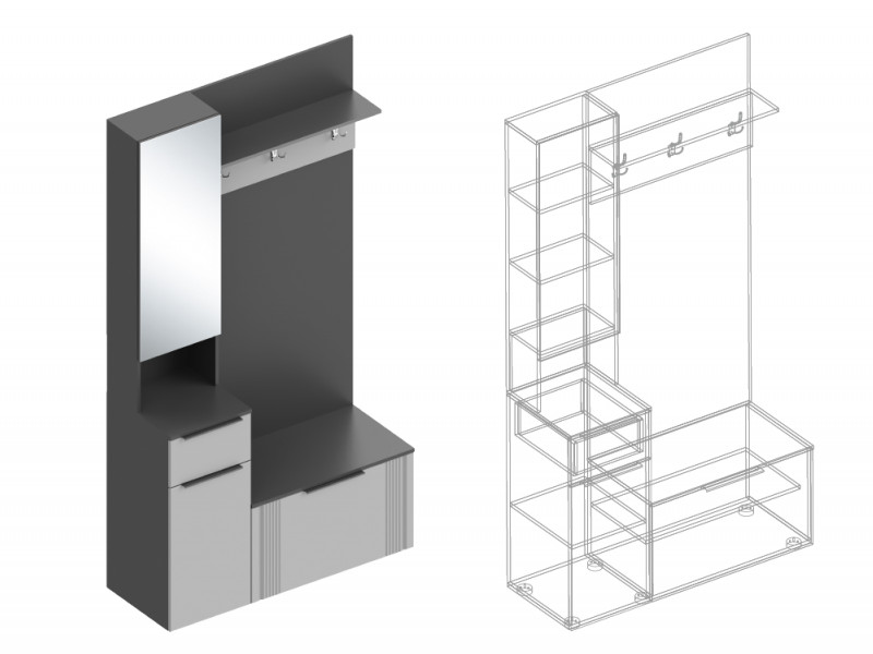 - Фасад: МДФ с фрезеровкой, плёнка ПВХ Силк Маус толщина 320-350 микрон МКМ (с праймером)
