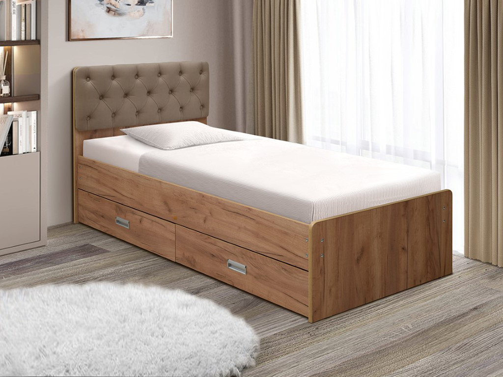 - Кровать одинарная №7 с ящиками 900х1900 мягкая спинка каретная стяжка