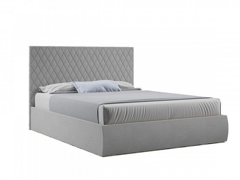 - Кровать Стелла с ПМ 1400х2000 мм микровелюр светло-серый