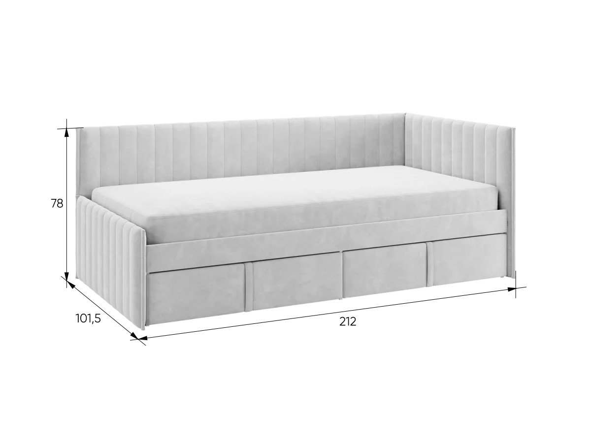Кровать-тахта с ящиками Твикс цвет велюра галька