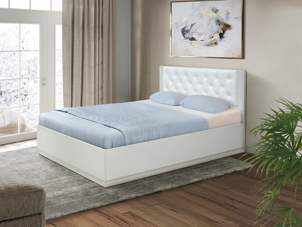 - Кровать Венеция 12.2 1200 с ортопедическим основанием кожзам белый