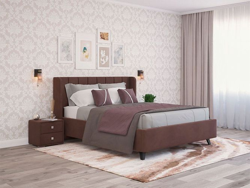 - Кровать Виола с ПМ 1600х2000 мм микровелюр шоколадный