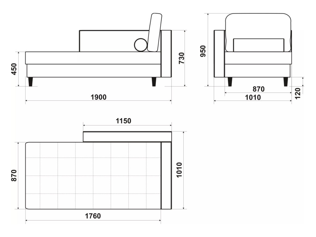 Размеры дивана (мм): 1900*1010*950