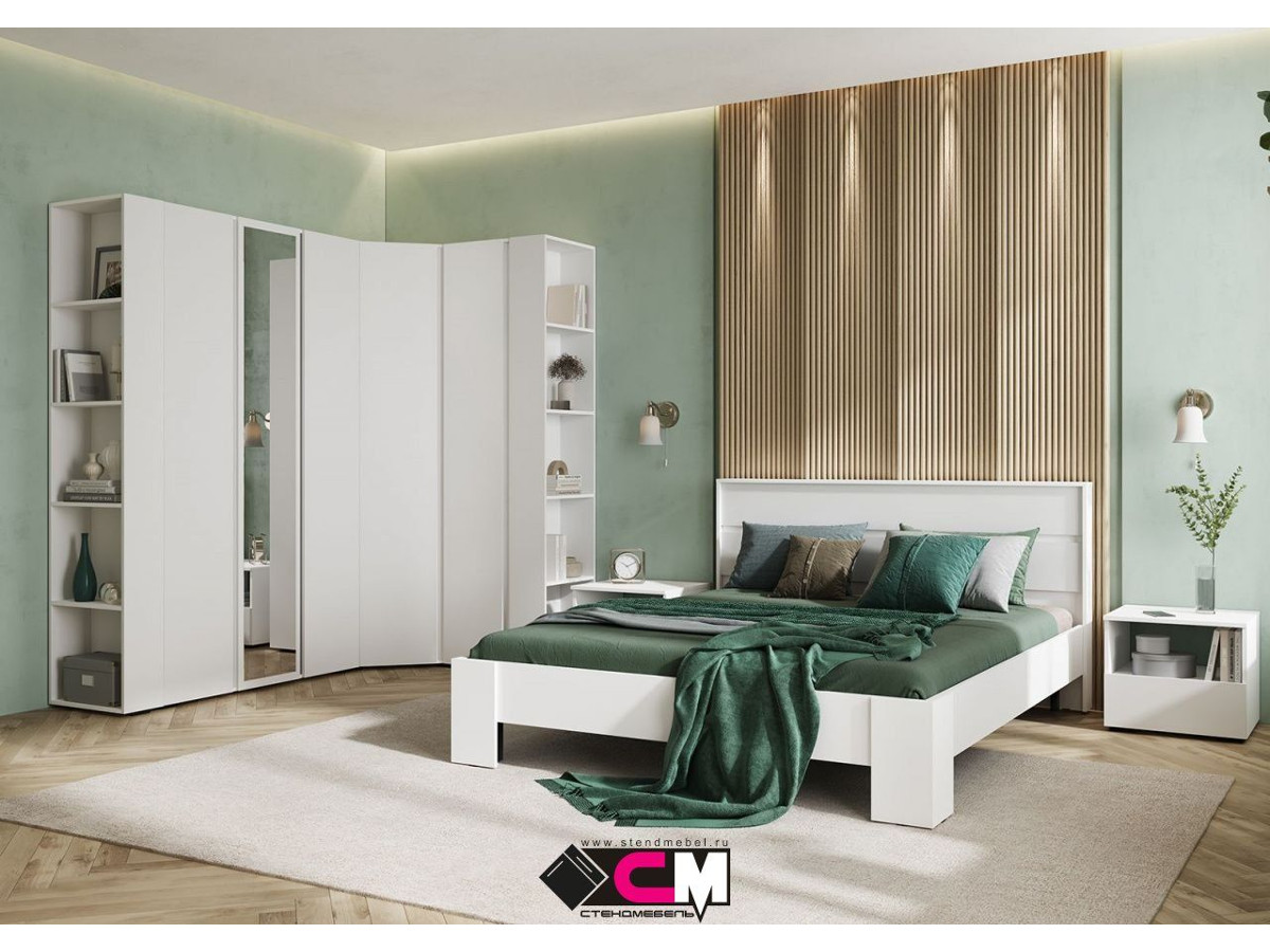 Цена за комплект на фото: КР 02 Кровать 1.4х2.0, ТБ 01 Тумба (2 шт), СТЛ 01 Стеллаж (2 шт), ШК 02 Шкаф, ШК 04 Шкаф угловой, ПН 01 Пенал