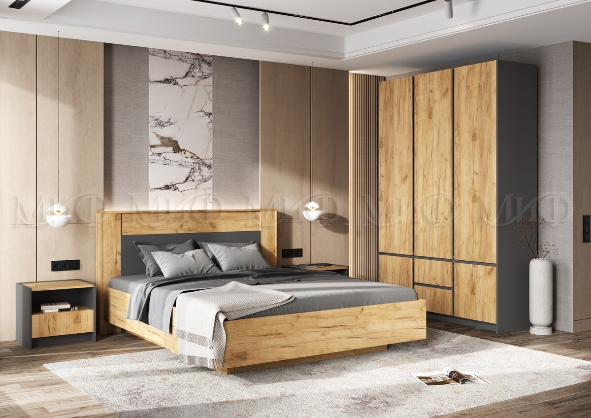 Цена за комплект: Тумбы прикроватные, Кровать парящая 1,6м (ортопед дерево), Шкаф 3-х створчатый