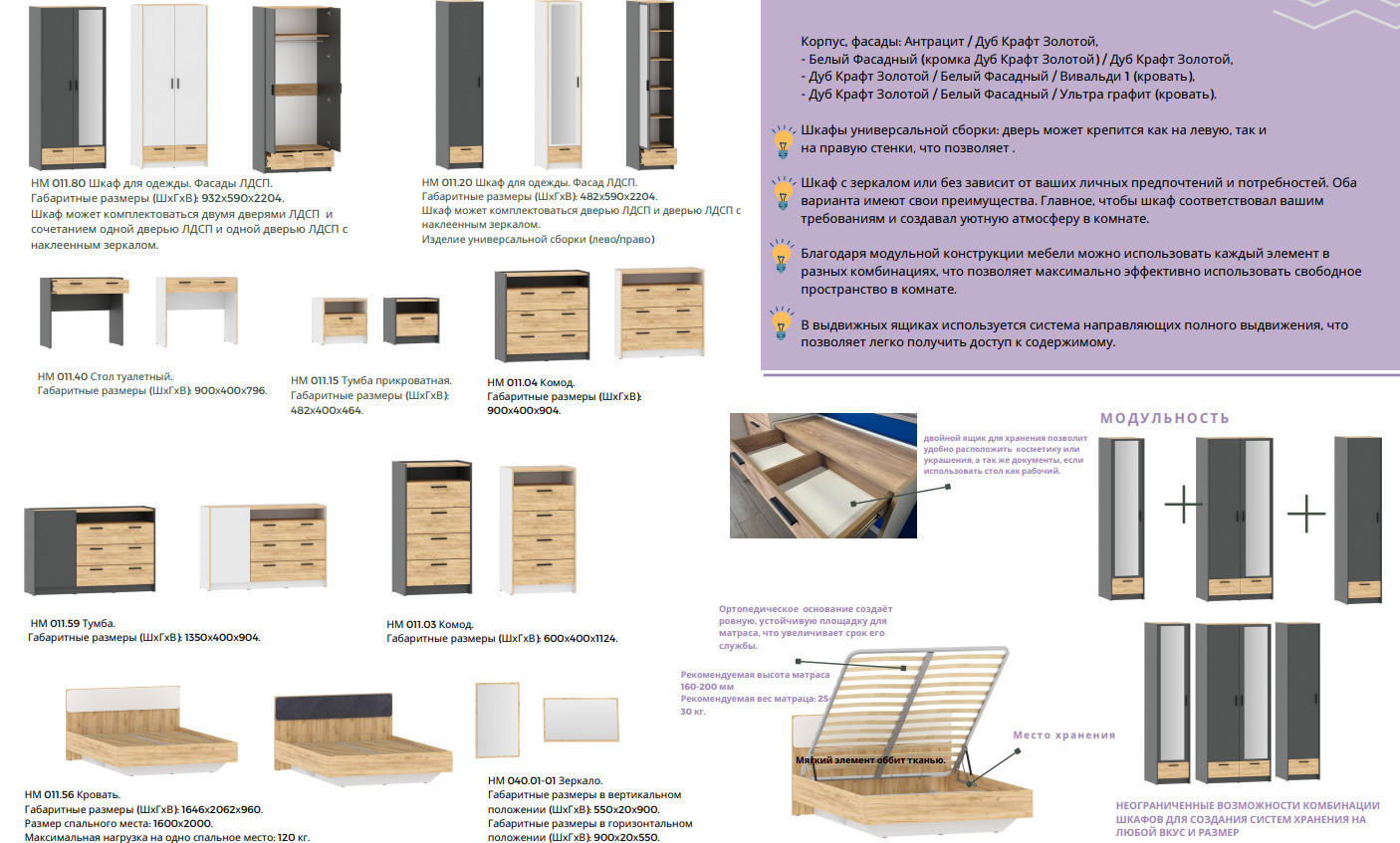 Цвет: Антрацит/Дуб Крафт Золотой
