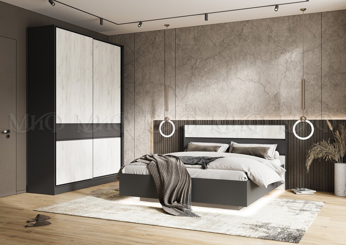 - Спальня Роджина Графит/Дуб Крафт Белый