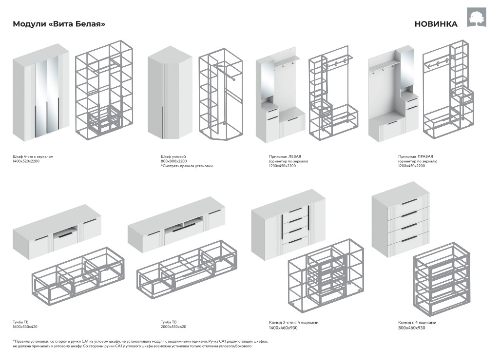 - Фурнитура: Ручка профильная СА1, направляющие шариковые