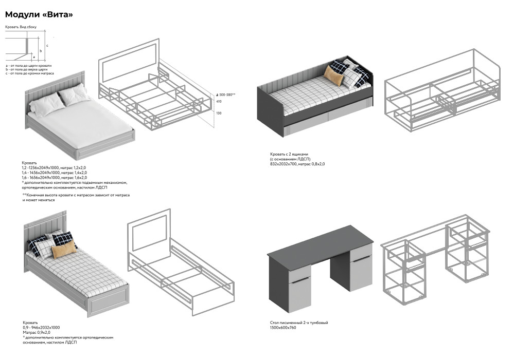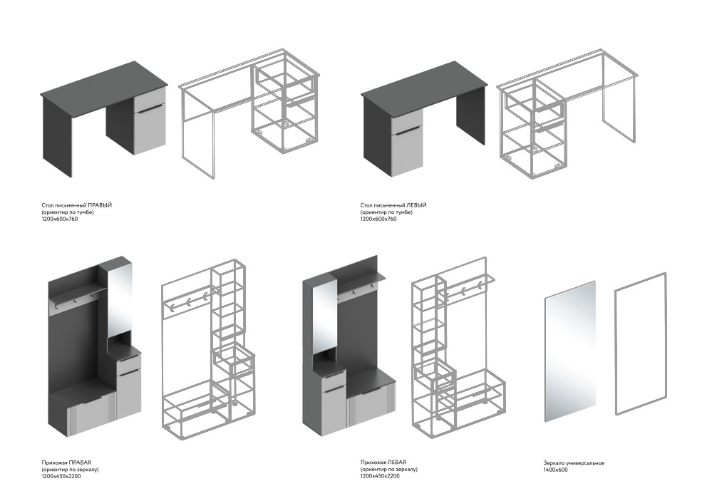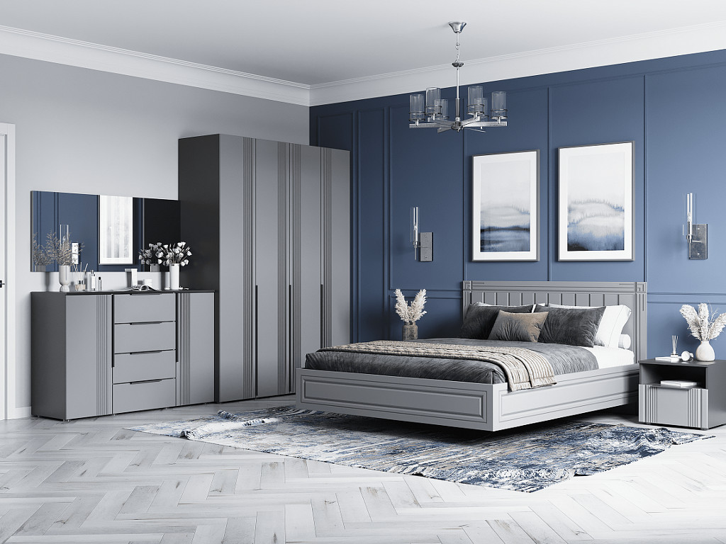 Цена за комплект: Зеркало , Комод с 4 ящиками, Полка универсальная 2-створчатая, Шкаф 3-створчатый с зеркалом, Тумба прикроватная, Кровать 1,4 Настил 1400