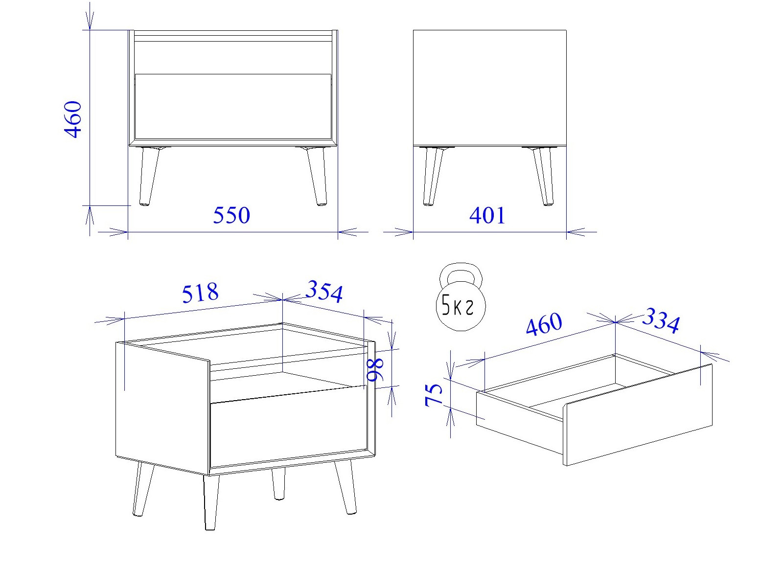 Макс.нагрузка на ящик (кг): 10