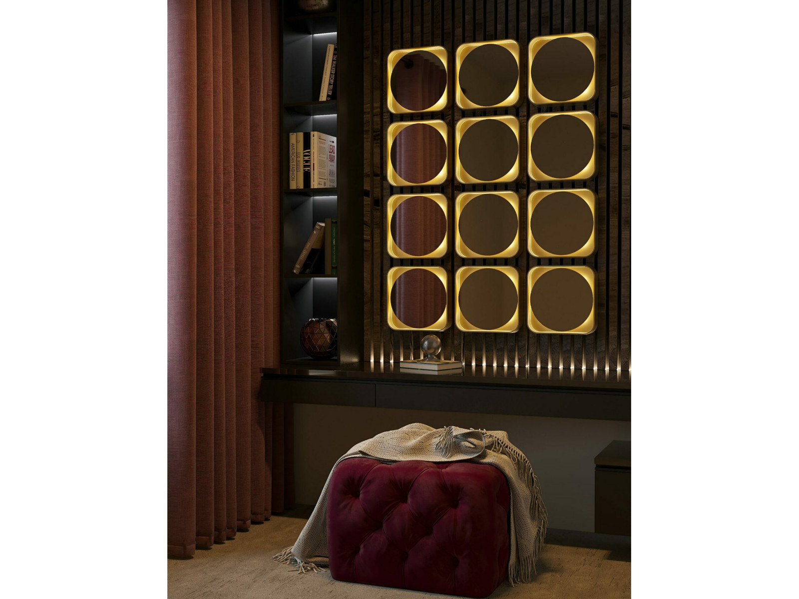 Панно состоит из зеркал: Zamzara Cudro 1 и круглых зеркал - 12шт.