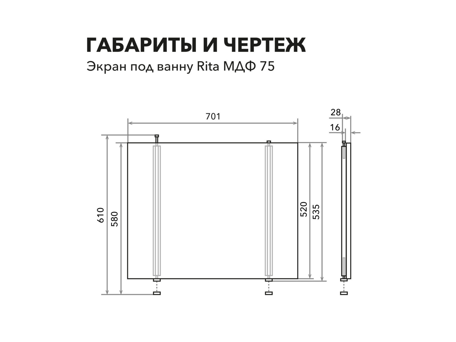 - Экран под ванну МДФ Rita 0,75 торцевой серый бетон