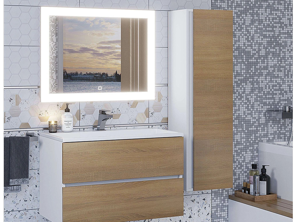 Шкаф-пенал для ванной Uperwood Barsa подвесной белый/дуб сонома