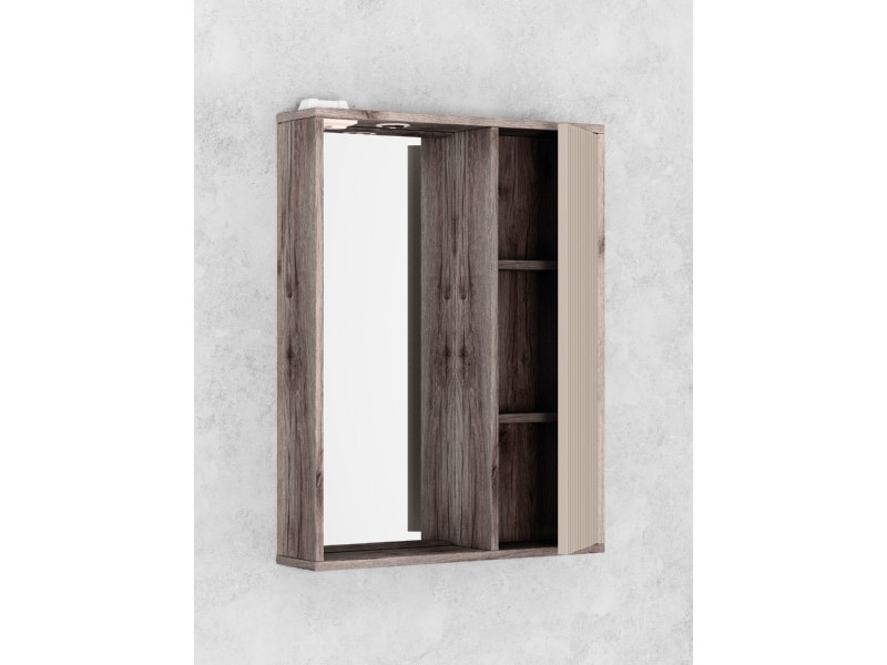 - Шкаф-зеркало Рица 60 со светильником правый cерый/керамика