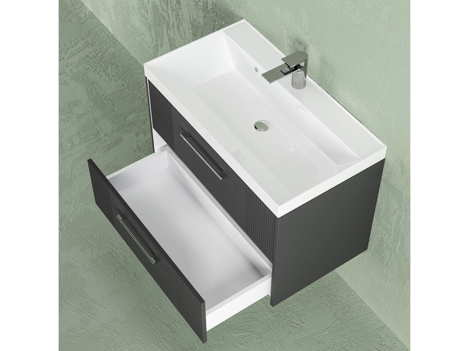 - Тумба Альба 60 подвесная 2 ящика раковина Океан 60 антрацит