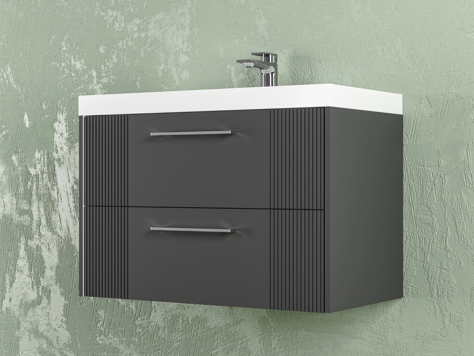 Тумба Альба 70 подвесная 2 ящика раковина Слим 70 антрацит