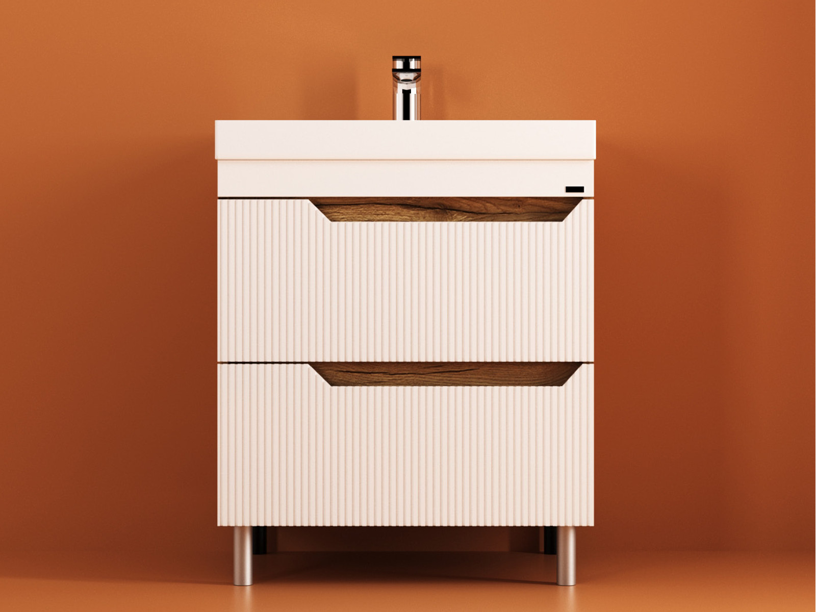 - Тумба Леон Риф 70 напольная 2 ящика раковина Слим 70 солярис/белый риф