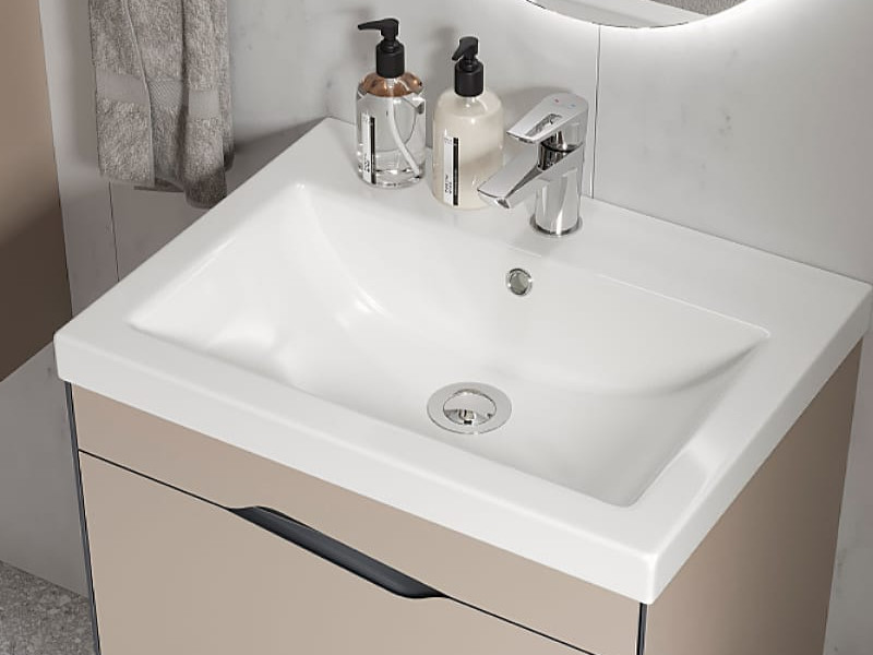 - Тумба под раковину Krona 600-0-1 Como навесная серый камень