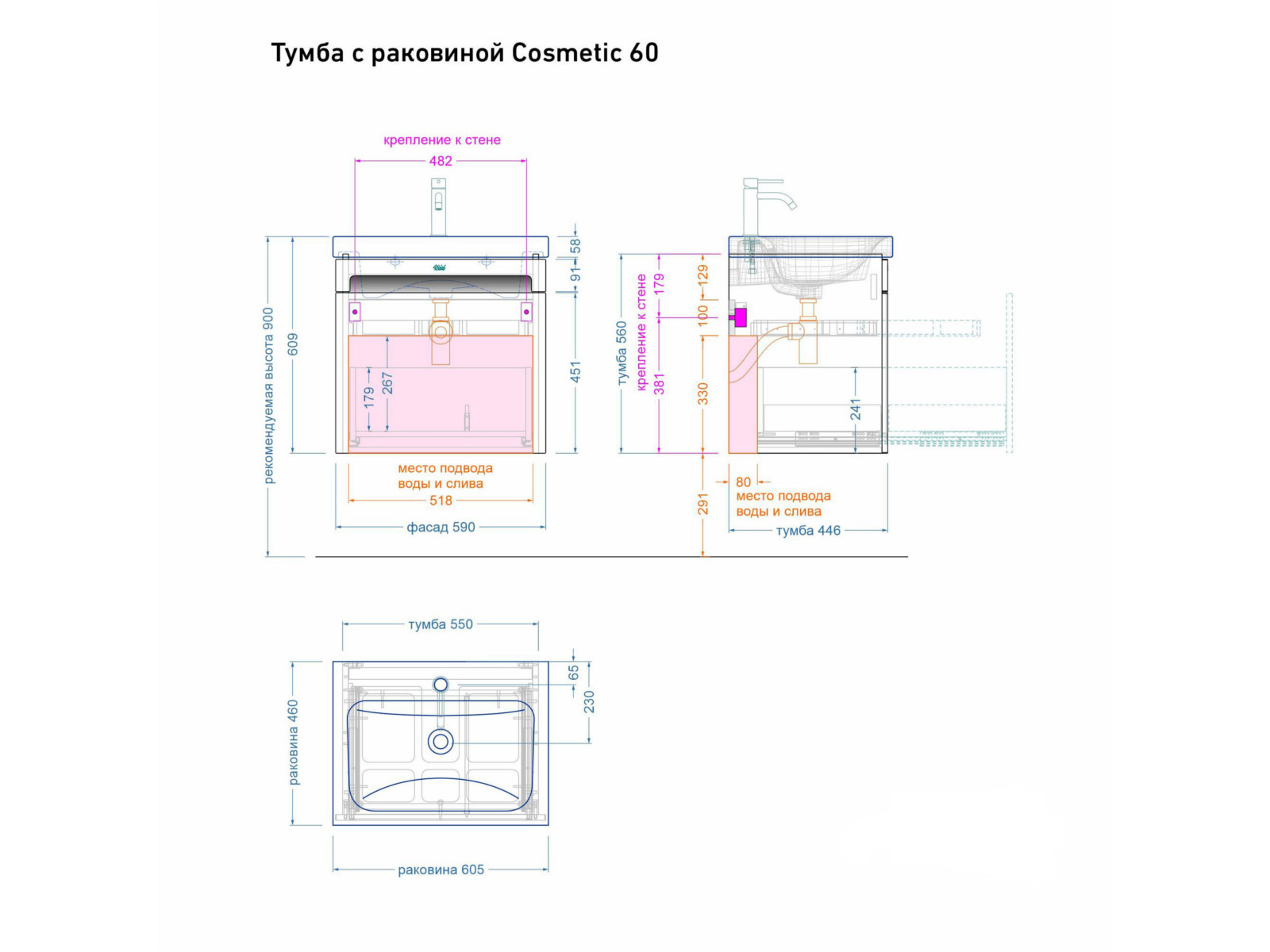 - Тумба с раковиной Cosmetic 60 белая