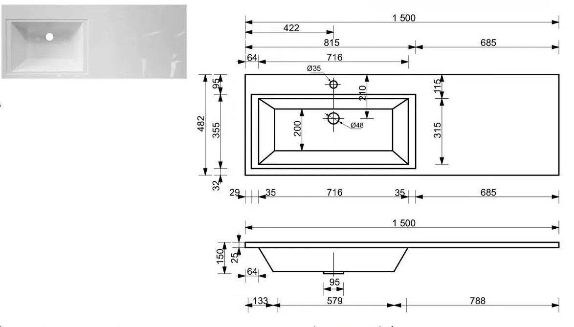 - Тумба с раковиной Dallas Luxe 1500 навесная 2 ящика левая