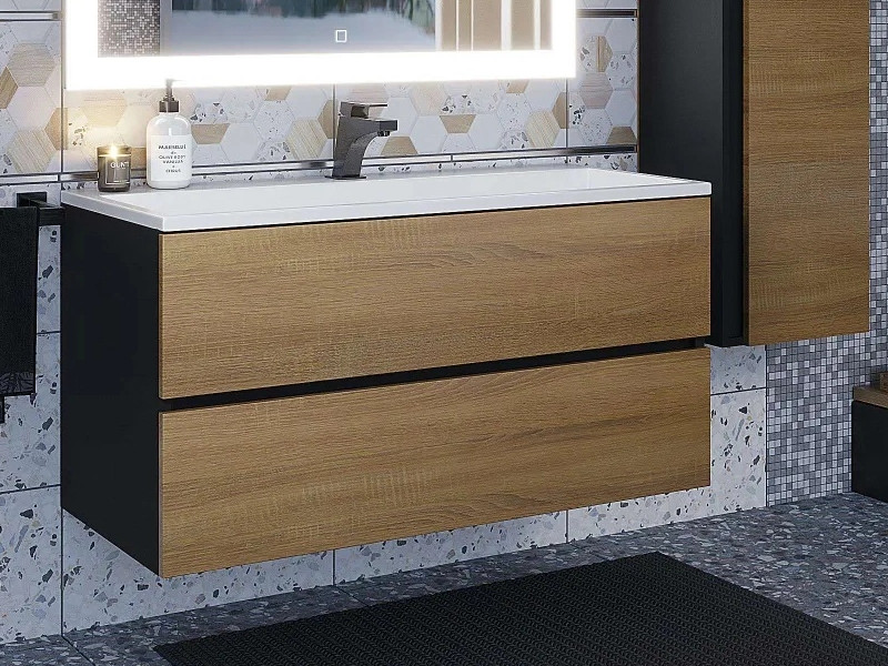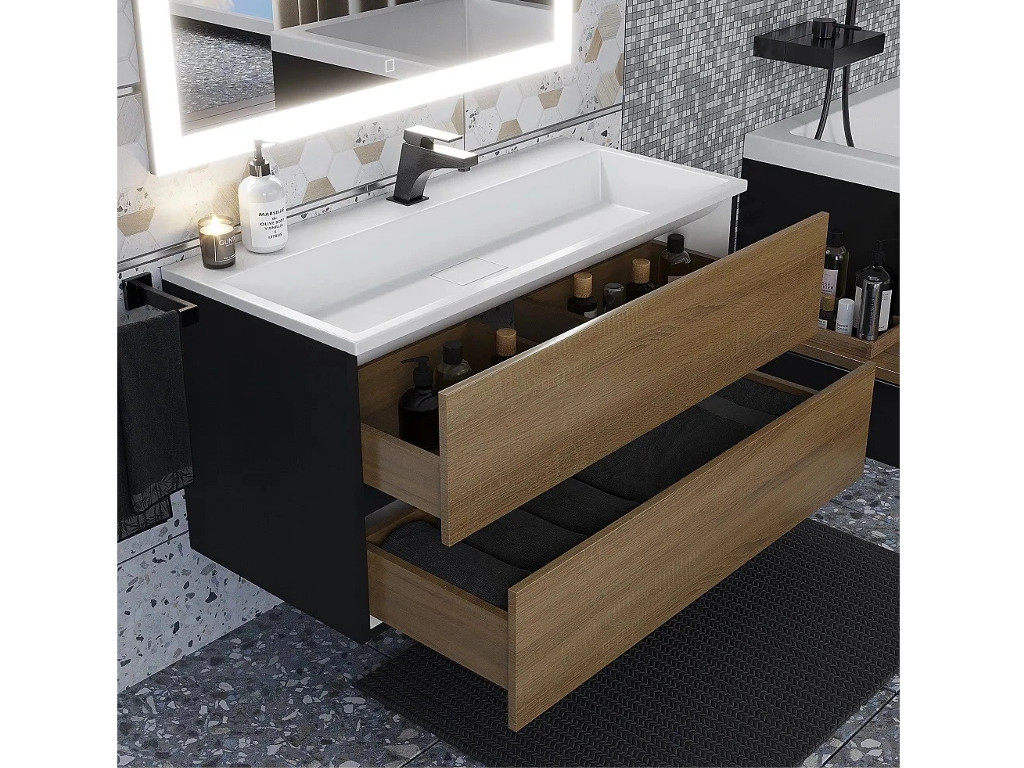 Тумба с раковиной Uperwood Barsa 100 см раковина белая-тумба черная/дуб сонома