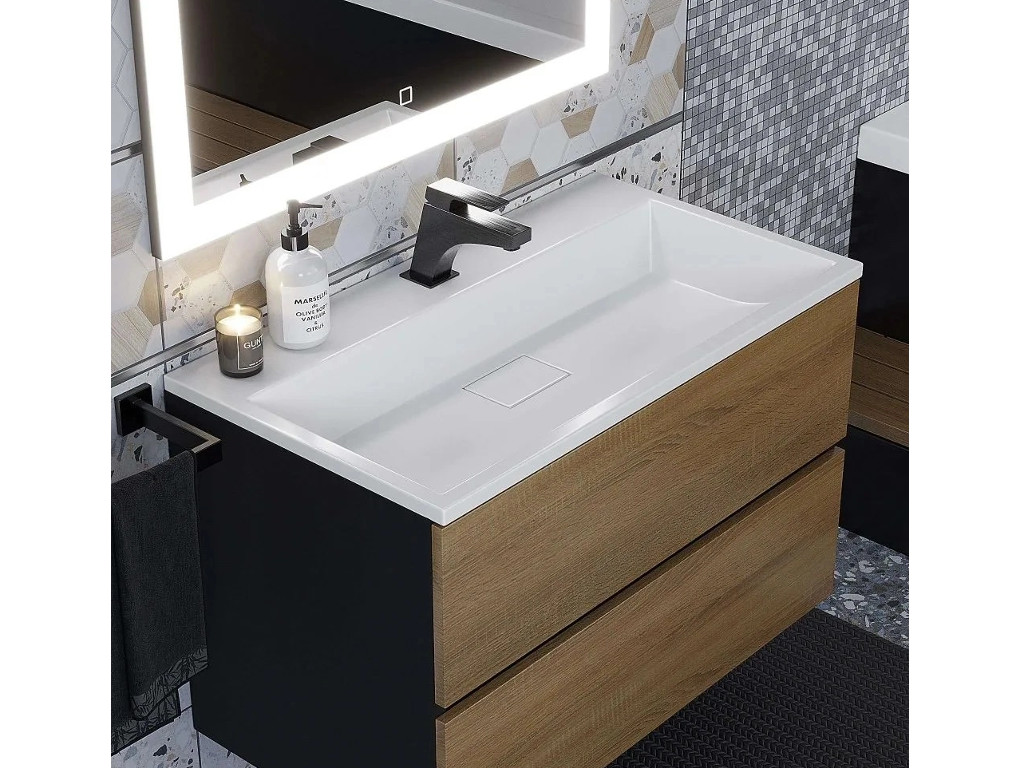 - Тумба с раковиной Uperwood Barsa 80 см раковина белая-тумба черная/дуб сонома