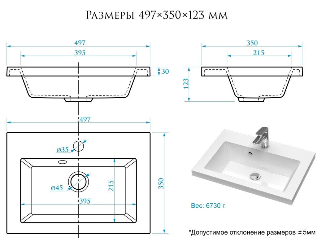 - Тумба с раковиной Uperwood Eva Дуб Харбор белый 50 см