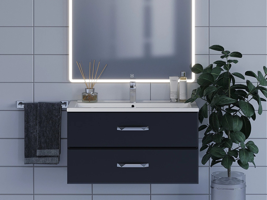 - Тумба с раковиной Uperwood Foster черная 90 см