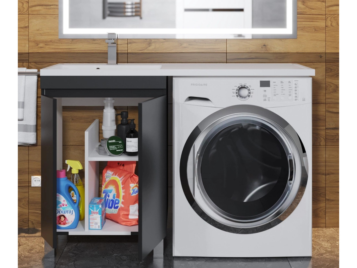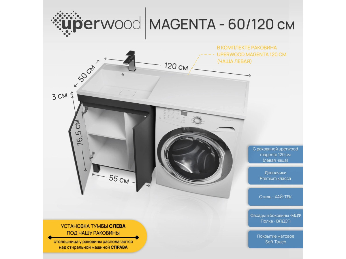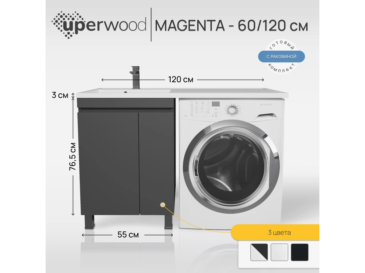 - Тумба с раковиной Uperwood Magenta 60-120 см напольная черная с дверцами левая