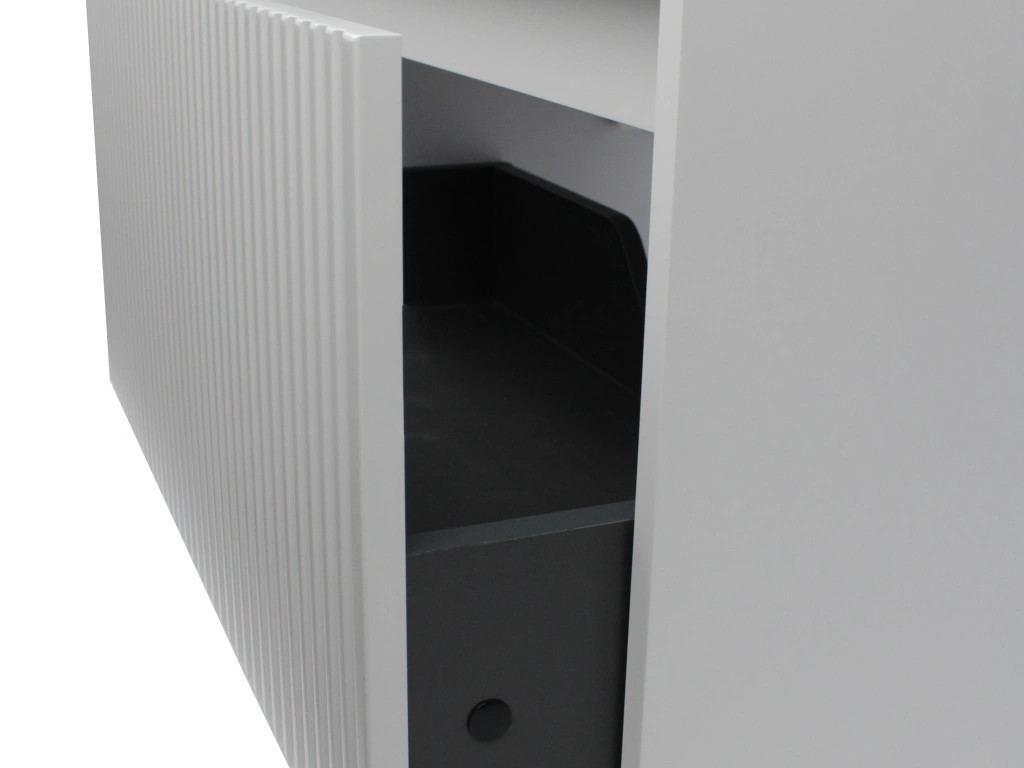 - Фасад и боковые стенки изделия выполнены из МДФ толщиной 16 мм. Фасады с вертикальной фрезеровкой.