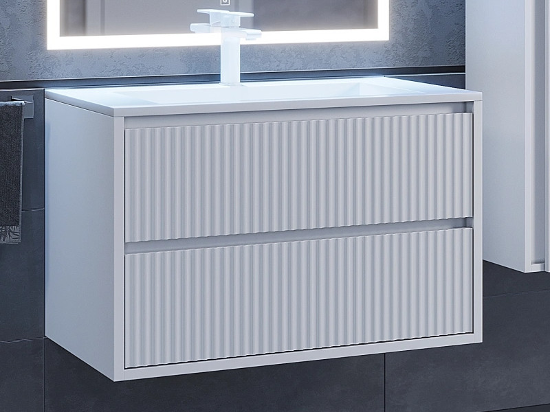 - Тумба с раковиной Uperwood Next Premium белая 2 ящика 80 см