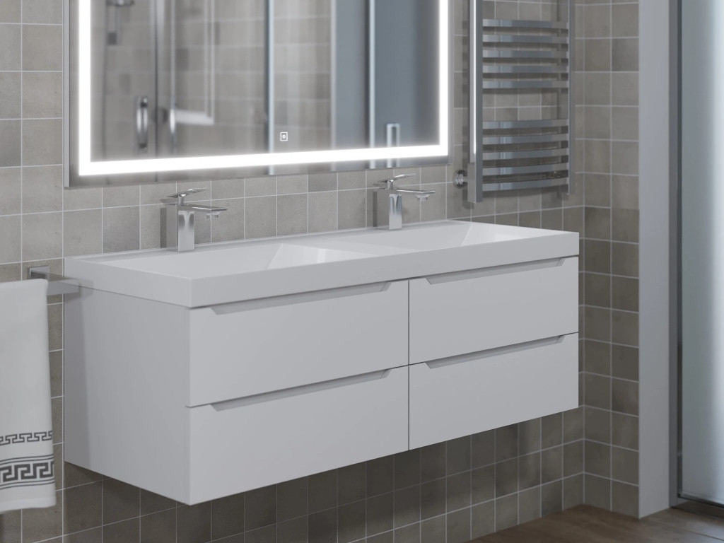 - Тумба с раковиной Uperwood Tanos 120 см подвесная двойная белый