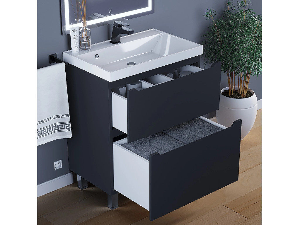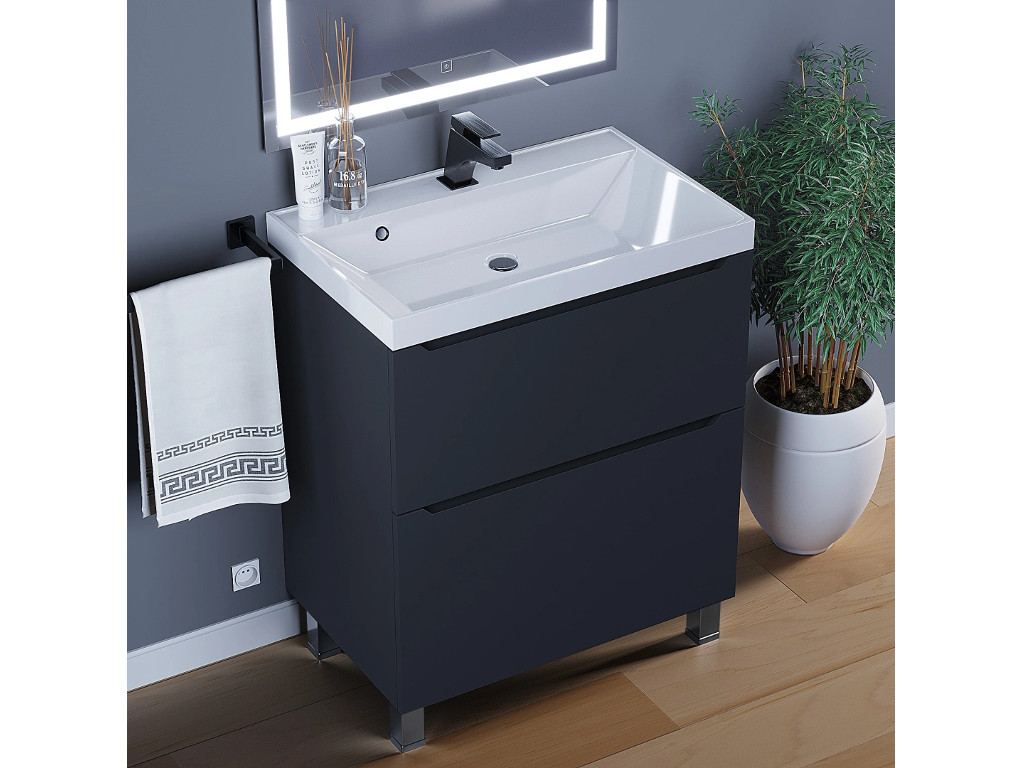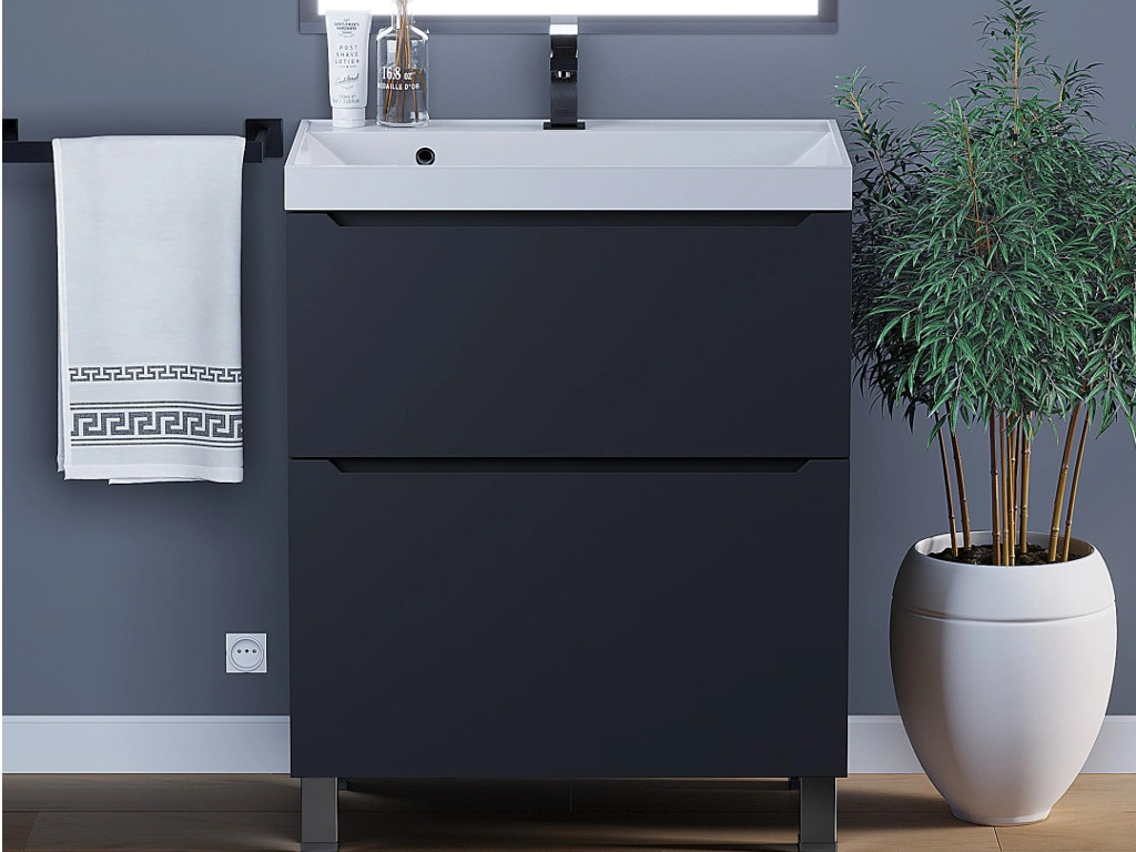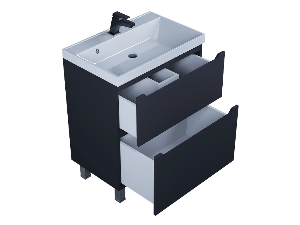 - Тумба с раковиной Uperwood Tanos 2 ящика напольная 70 см черная