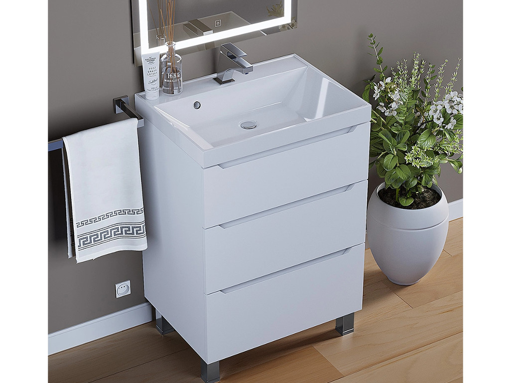 Тумба с раковиной Uperwood Tanos 3 ящика напольная 60 см белая