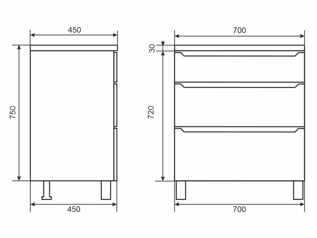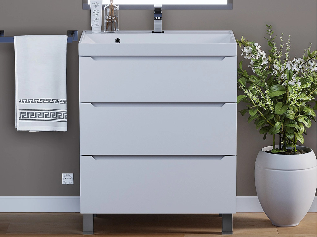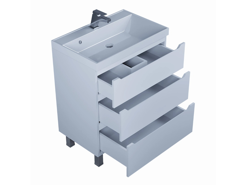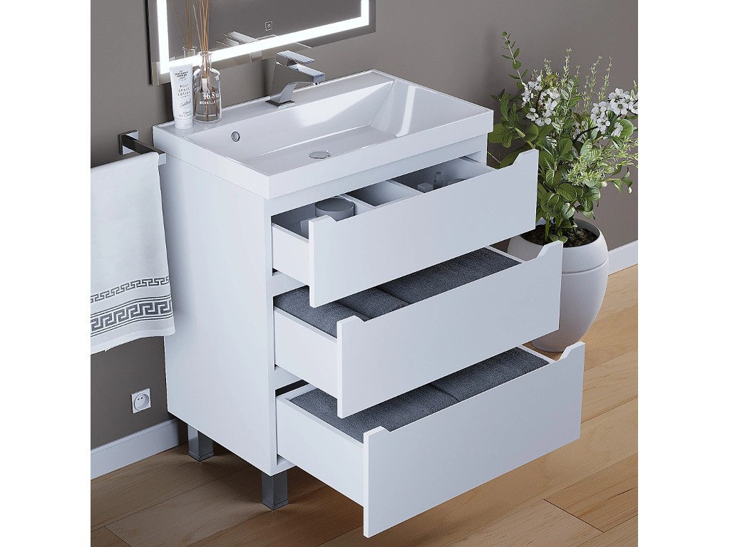 - Тумба с раковиной Uperwood Tanos 3 ящика напольная 70 см белая