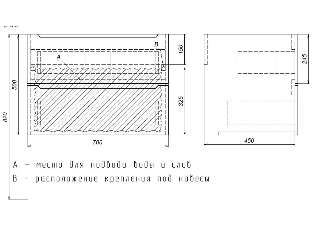 - Тумба с раковиной Uperwood Tanos матовая белая/графит 70 см