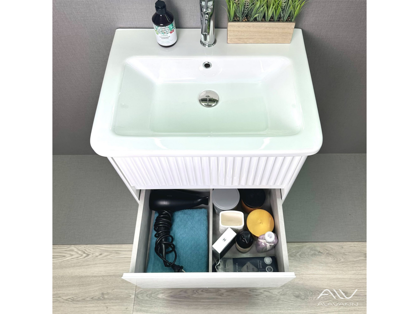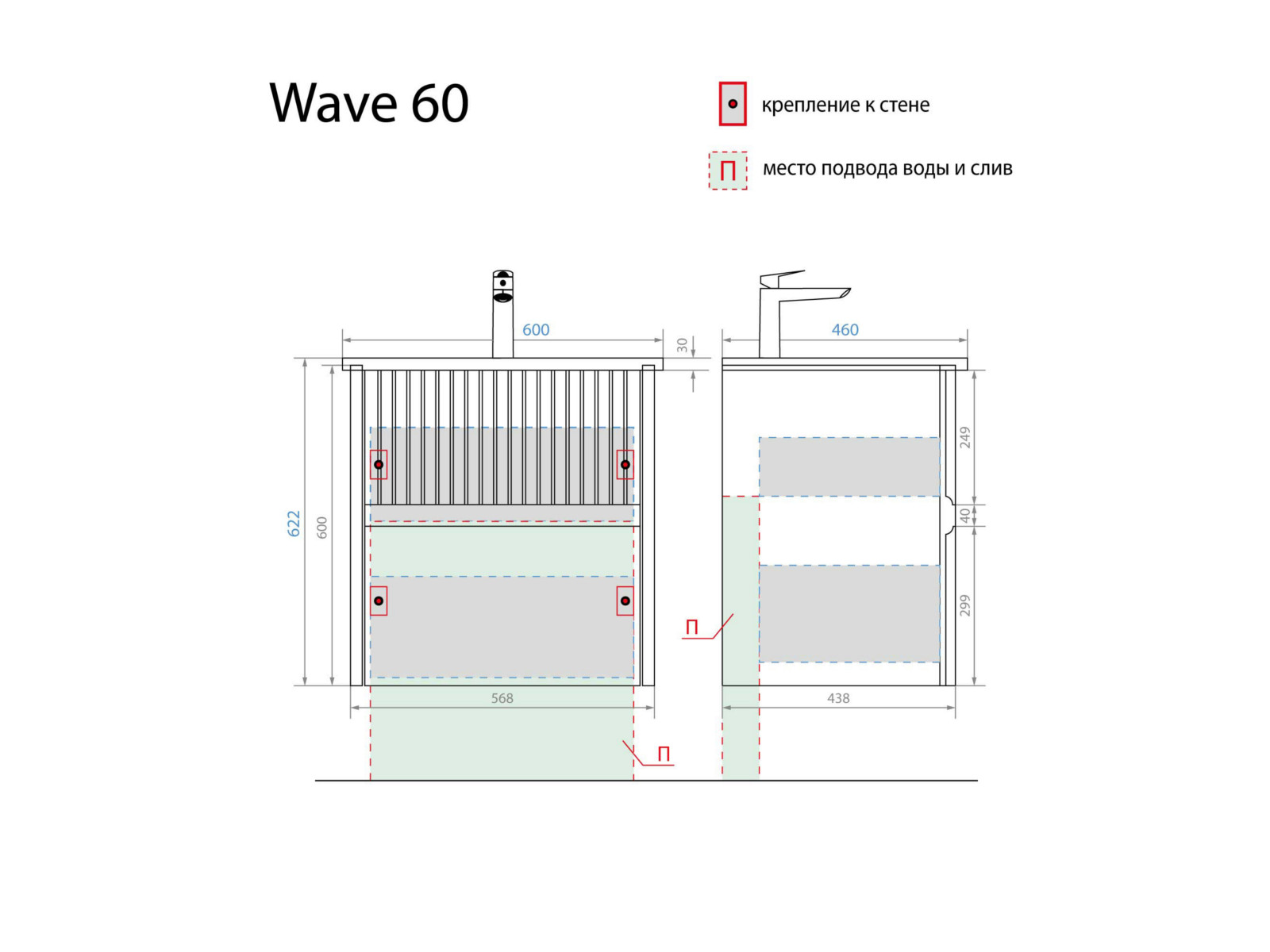- Тумба с раковиной Wave 60 белая