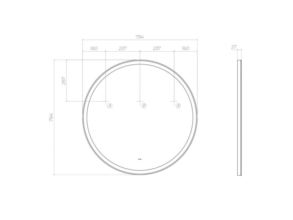 Подсветка фронтальная по периметру, с цветовой температурой 5000К – нейтральный белый, управление подсветкой бесконтактный выключатель «на взмах»