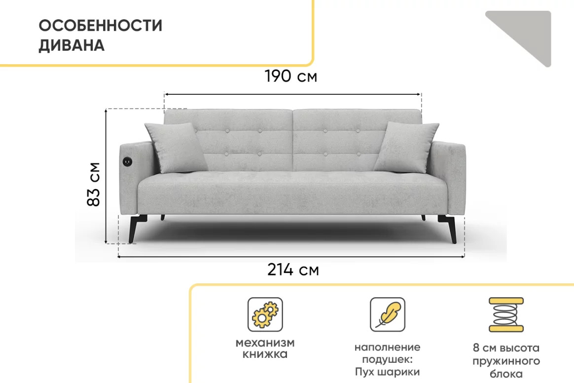 - Диван Аллаки с USB розеткой Серый Tailor 7