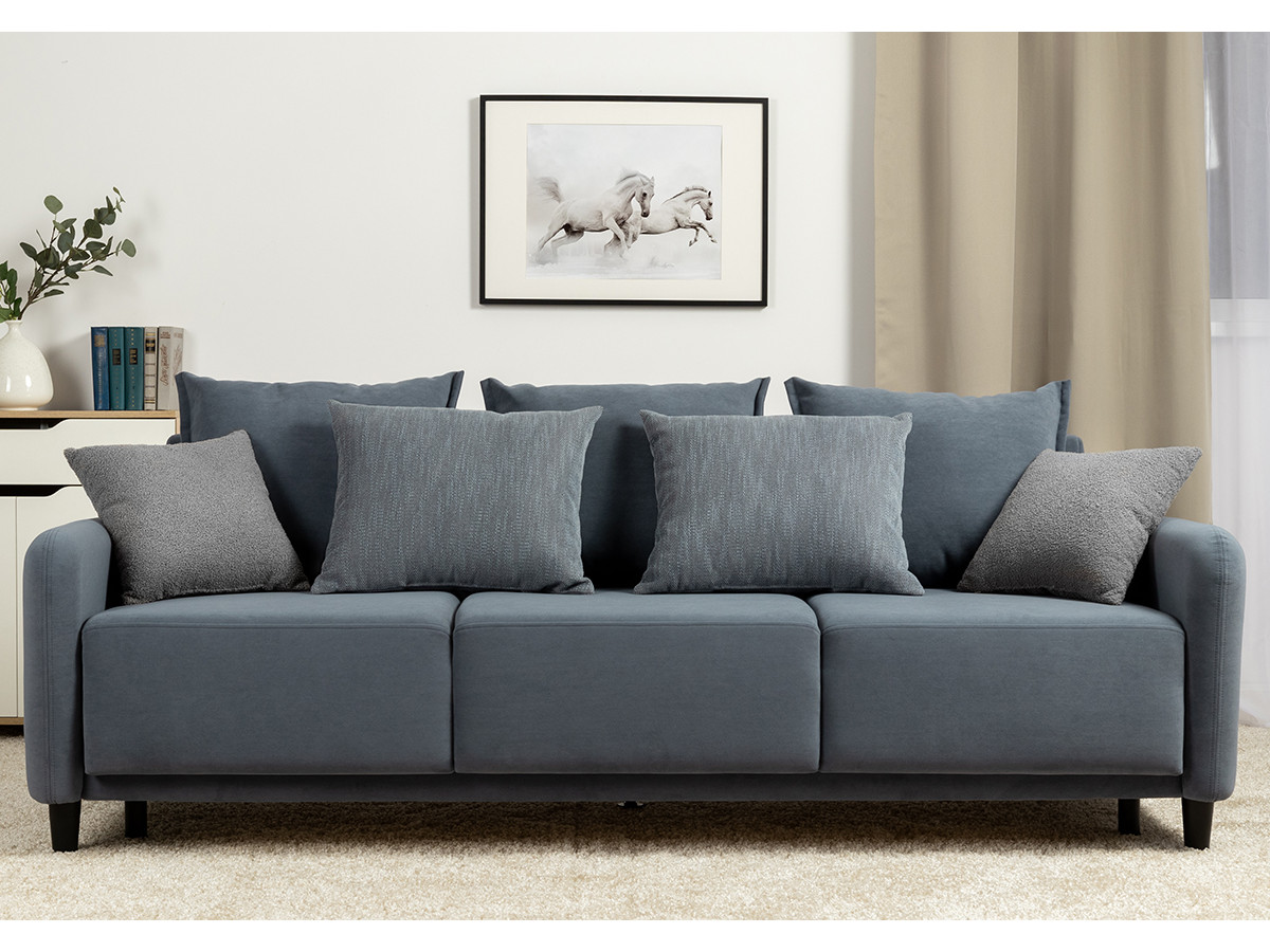 Декор: В комплекте 2 двусторонние декоративные подушки и 2 декоративные думки. Задняя спинка в ткани основы. Декоративные отделочные строчки по боковинам и сиденью