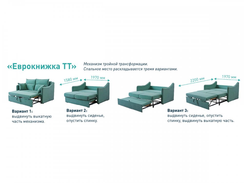 Механизм: Модель LaFlex 2-01 ДУ: "Еврокнижка ТТ" (механизм тройной трансформации, увеличенное спальное место, оттоманка с ящиком)