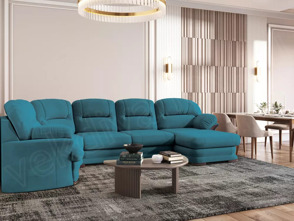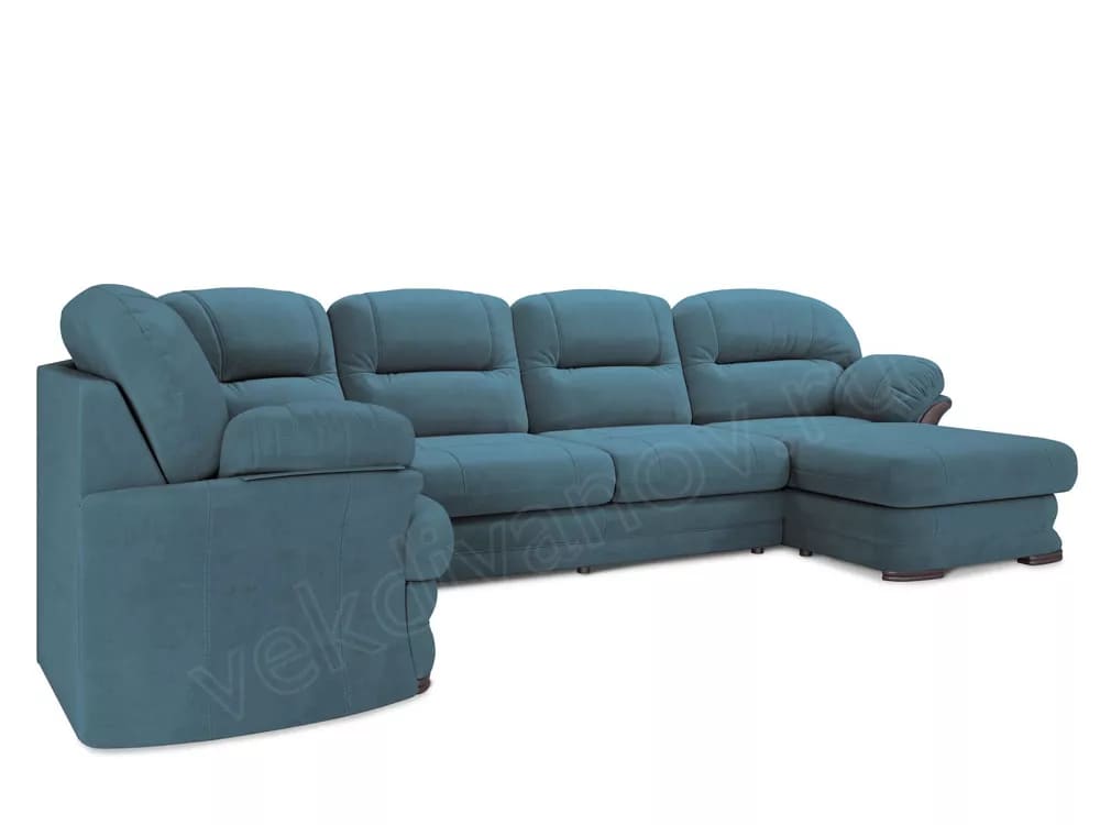 Диван угловой большой П-образный Квин 6 Newtone azure