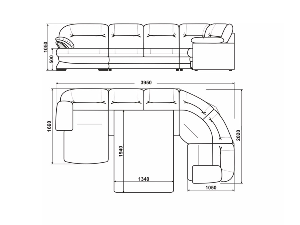 Размеры дивана (мм):  2020*3950*1660*1050