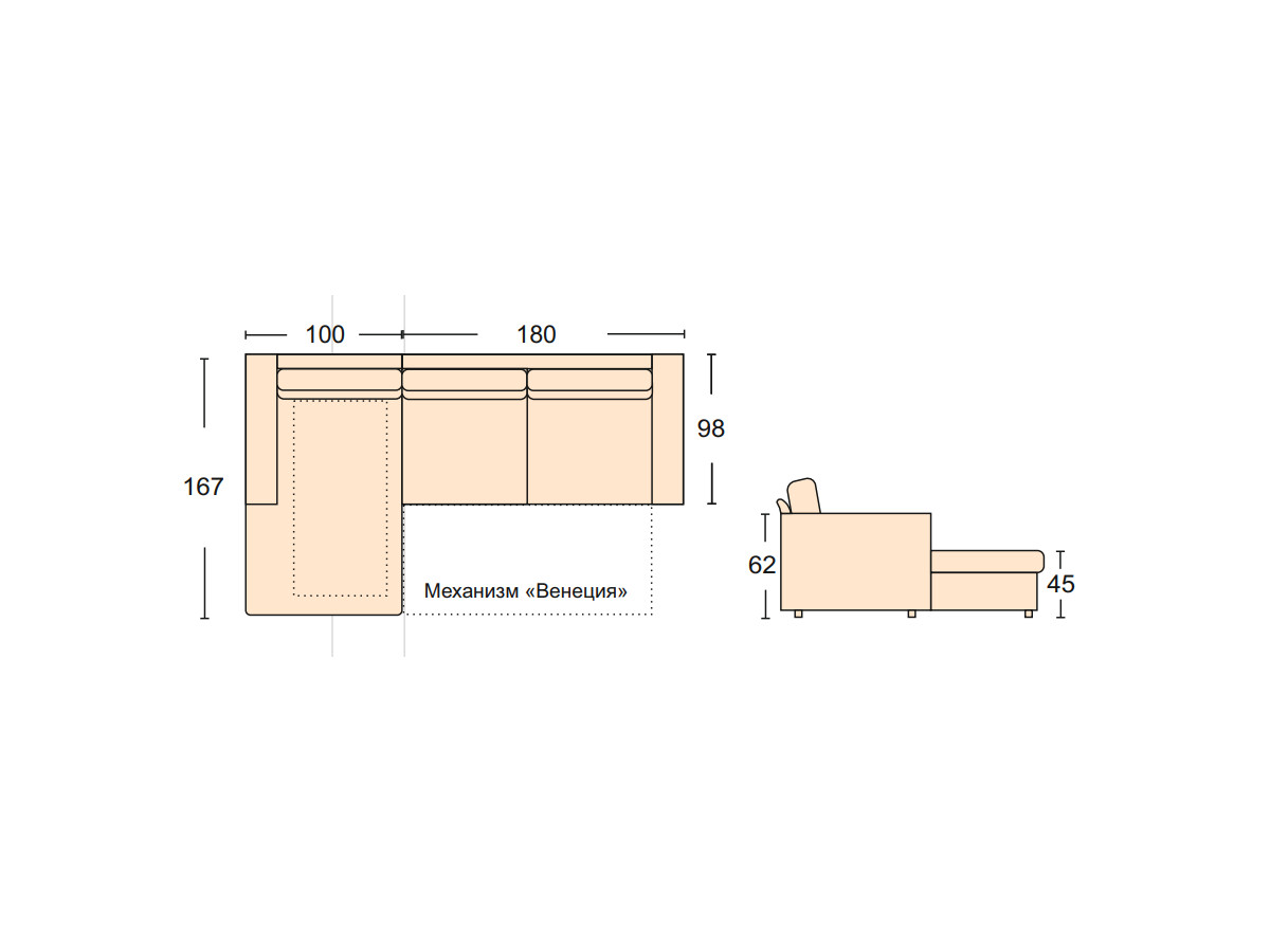 Размеры общие: 2800 х 1670 х 980 мм
