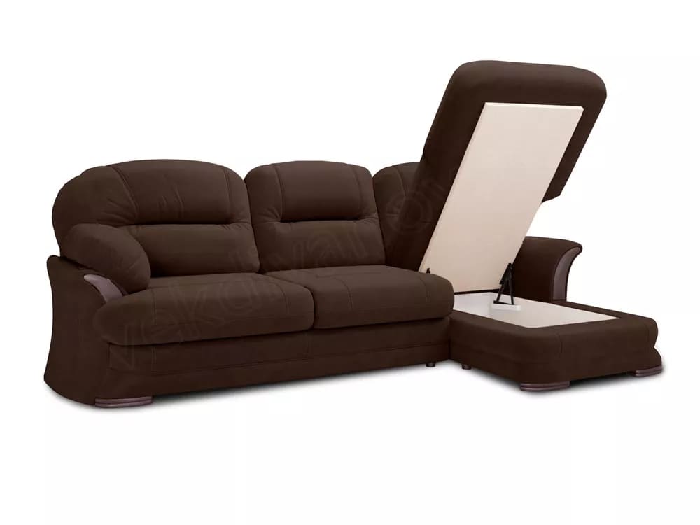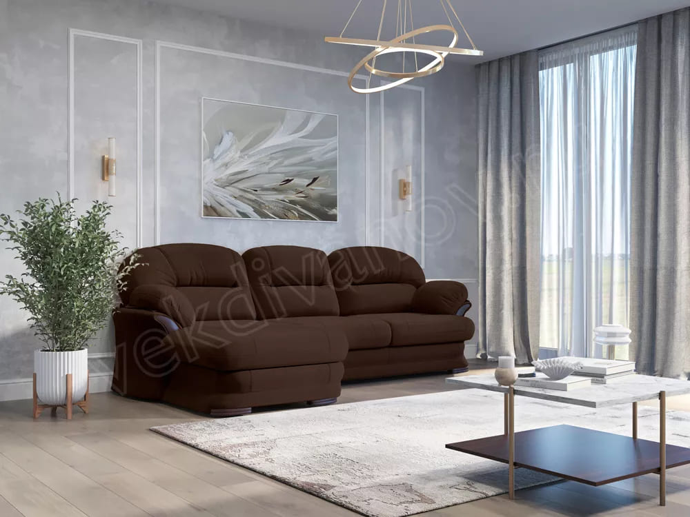 Диван угловой Атлант без столика кожзам коричневый